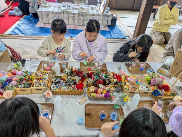 掛川市内や近郊地区の未就学児~中高生及び保護者を対象に掛川市千浜 来福の永福寺にて様々な職種のワークショップを行い、制作・体験を一緒に行うことで若い世代と子ども・子育て世代の交流促進及び働くことへの意識を高める。